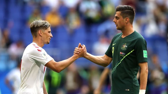 However a Yussuf Poulsen handball inside the Danish area - following a VAR review - presented Australia the break they need. Mile Jedinak converted the resulting penalty and a yellow card for Poulsen means he will miss Denmark's next match.
